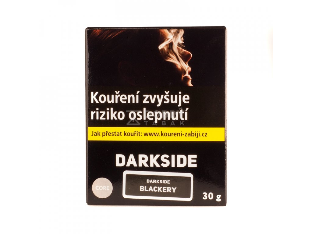 Tabák do vodní dýmky Dakrside Core Blackery s příchutí ostružiny prodávaný v malém degustačním balení 30 g. Z tohoto malého degustačního balení lze nabít až dvě korunky vodní dýmky a je tak ideálním pro prozkoumání bohaté nabídky příchutí tabáků značky Darkside.