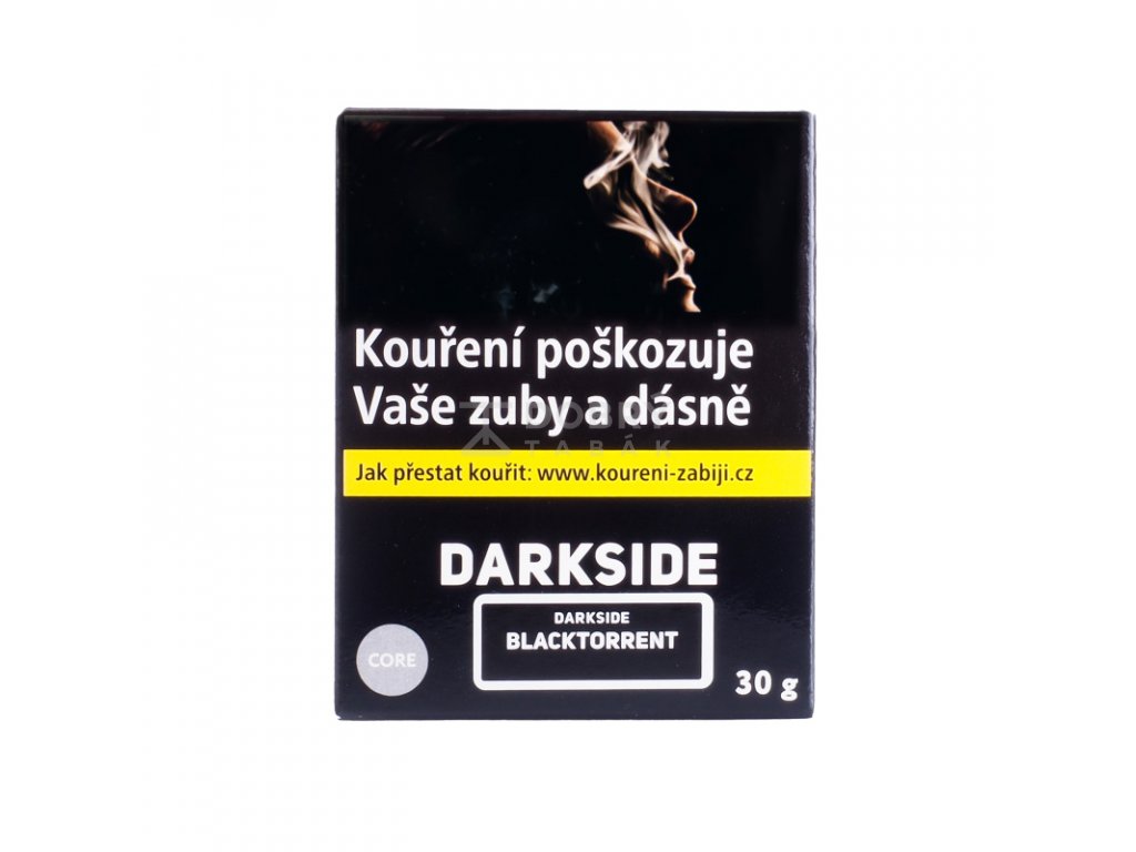 Tabák do vodní dýmky Dakrside Core Blacktorrent s příchutí černého rybízu prodávaný v malém degustačním balení 30 g. Z tohoto malého degustačního balení lze nabít až dvě korunky vodní dýmky a je tak ideálním pro prozkoumání bohaté nabídky příchutí tabáků značky Darkside.