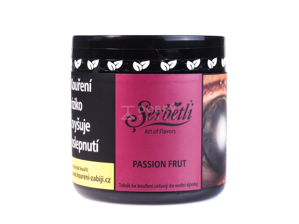 Tabák do vodní dýmky Serbetli Passion Frut s příchutí mučenky od oblíbeného tureckého výrobce tabáků do vodních dýmek Serbetli využívá světlé tabákové listy s hrubším cutem a medovým základem. Díky tomu si můžete vychutnat bohatě melasovitý světlý tabák s vysokou tepelnou odolností a nízkým obsahem nikotinu, a samozřejmě také hustý dým a intenzivní chuť. Prodáván ve větším balení 250 g.
