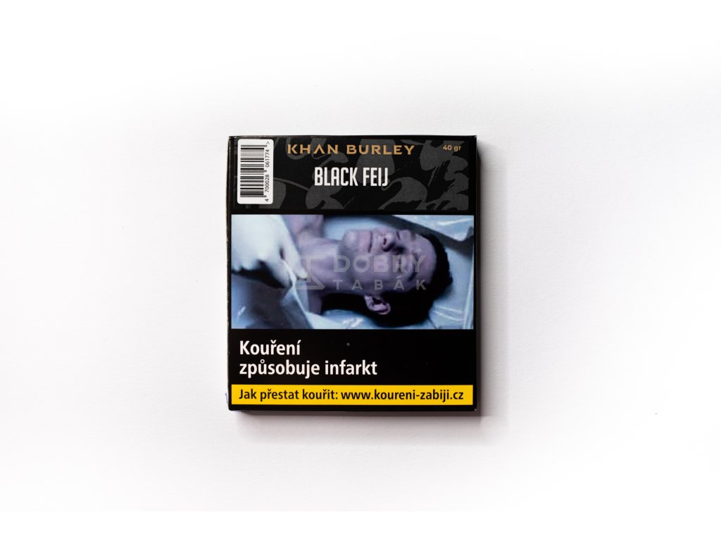 Tabák do vodní dýmky Khan Burley Black Feij s příchutí černého rybízu a feijoy v menším balení 40 g je prémiový tmavý tabák do vodní dýmky, vyrobený společností Mongol Group z Kyrgyzstánu. Je to specifický tabák do vodní dýmky založený na odrůdě tabáku Burley, která je oblíbená pro svou vyšší sílu a specifický obsah nikotinu. Tento tabák je zpracován pomocí technologie, která zachovává jeho jemnost, avšak přitom nabízí přirozeně intenzivní chuť a zážitek. Co jej odlišuje je jeho přirozená chuť, která může zahrnovat čokoládové podtóny.