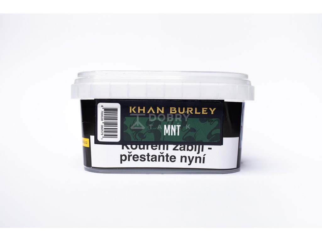 Tabák do vodní dýmky Khan Burley Mnt se svěží příchutí máty v balení 250 g je prémiový tmavý tabák do vodní dýmky, vyrobený společností Mongol Group z Kyrgyzstánu. Je to specifický tabák do vodní dýmky založený na odrůdě tabáku Burley, která je oblíbená pro svou vyšší sílu a specifický obsah nikotinu. Tento tabák je zpracován pomocí technologie, která zachovává jeho jemnost, avšak přitom nabízí přirozeně intenzivní chuť a zážitek. Co jej odlišuje je jeho přirozená chuť, která může zahrnovat čokoládové podtóny.