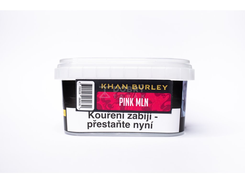 Tabák do vodní dýmky s příchutí melounu a jahody Khan Burley Pink Mln v balení 250 g je prémiový tmavý tabák do vodní dýmky, vyrobený společností Mongol Group z Kyrgyzstánu. Je to specifický tabák do vodní dýmky založený na odrůdě tabáku Burley, která je oblíbená pro svou vyšší sílu a specifický obsah nikotinu. Tento tabák je zpracován pomocí technologie, která zachovává jeho jemnost, avšak přitom nabízí přirozeně intenzivní chuť a zážitek. Co jej odlišuje je jeho přirozená chuť, která může zahrnovat čokoládové podtóny.