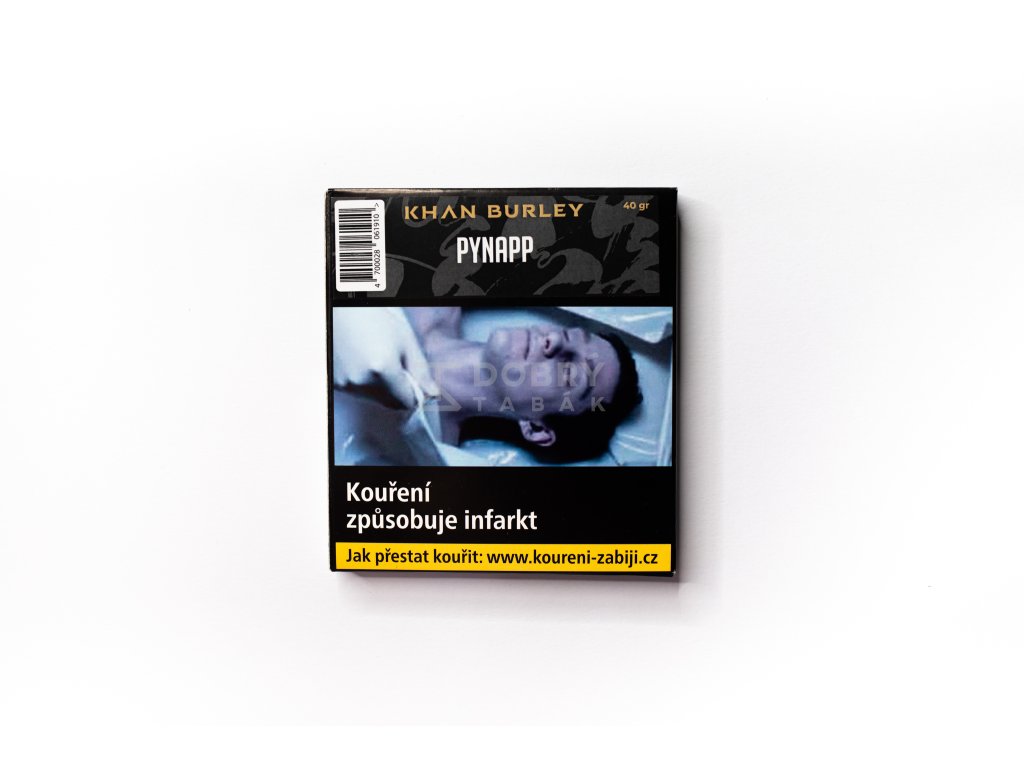 Tabák do vodní dýmky Khan Burley Pynapp s příchutí ananasu v menším balení 40 g je prémiový tmavý tabák do vodní dýmky, vyrobený společností Mongol Group z Kyrgyzstánu. Je to specifický tabák do vodní dýmky založený na odrůdě tabáku Burley, která je oblíbená pro svou vyšší sílu a specifický obsah nikotinu. Tento tabák je zpracován pomocí technologie, která zachovává jeho jemnost, avšak přitom nabízí přirozeně intenzivní chuť a zážitek. Co jej odlišuje je jeho přirozená chuť, která může zahrnovat čokoládové podtóny.