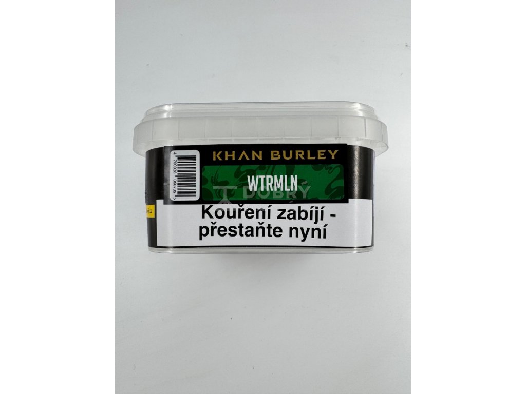 Prémiový tabák do vodní dýmky Khan Burley Wtrmln s příchutí vodního melounu v balení 250 g je vyrobený společností Mongol Group z Kyrgyzstánu. Je to specifický tabák do vodní dýmky založený na odrůdě tabáku Burley, která je oblíbená pro svou vyšší sílu a specifický obsah nikotinu. Tento tabák je zpracován pomocí technologie, která zachovává jeho jemnost, avšak přitom nabízí přirozeně intenzivní chuť a zážitek. Co jej odlišuje je jeho přirozená chuť, která může zahrnovat čokoládové podtóny.