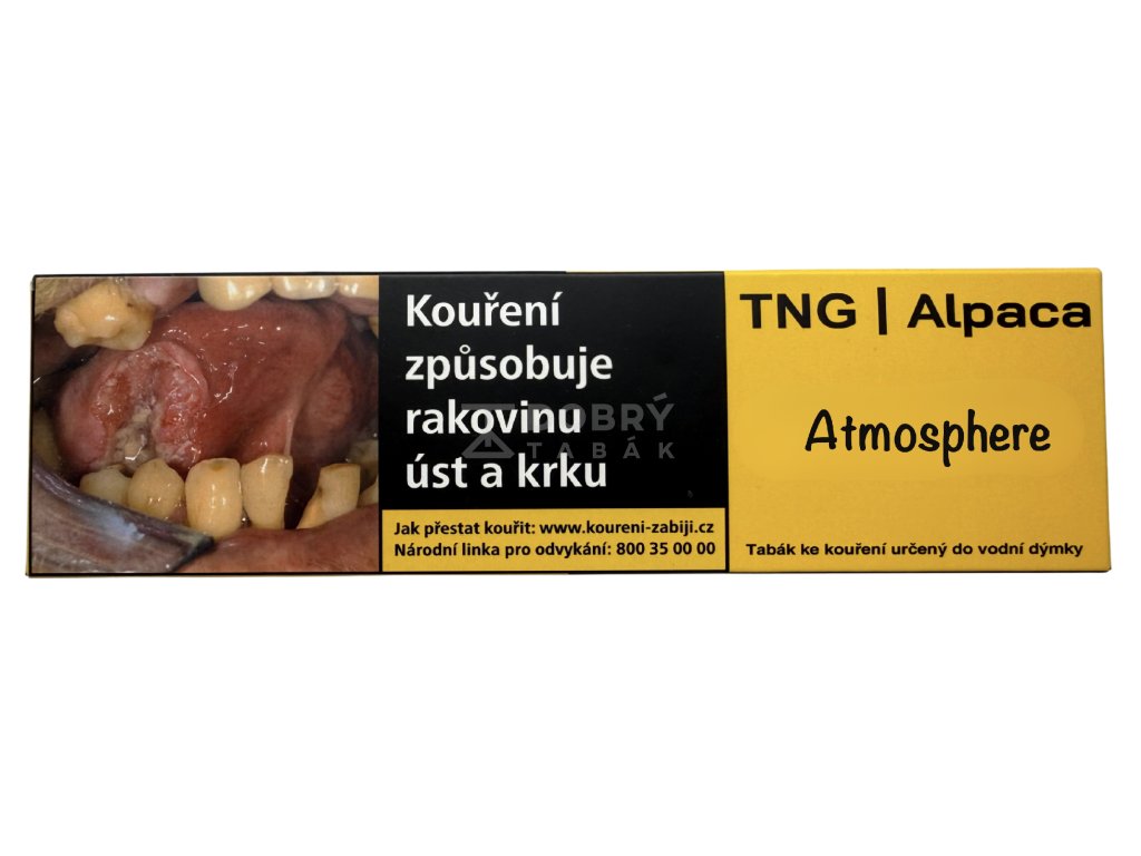 Tabák do vodní dýmky TNG Alpaca Atmosphere 250 g s příchutí jahody s citronovou trávou a limetkou je tmavým tabákem výrazné chuti a značné síly. Tento tabák pochází z výroby společnosti Tangiers, která je na českém trhu prodávána pod obchodním názvem TNG Alpaca. Tangiers nabízí ve své řadě Noir, mezi kterou se tento tabák řadí, přes 50 různých příchutí prémiového tmavého tabáku do vodní dýmky.