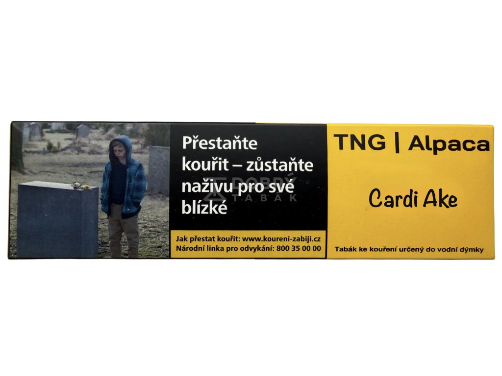 Tabák do vodní dýmky TNG Alpaca Cardi Ake 250 g s příchutí kardamonový cheesecake je tmavým tabákem výrazné chuti a značné síly. Tento tabák pochází z výroby společnosti Tangiers, která je na českém trhu prodávána pod obchodním názvem TNG Alpaca. Tangiers nabízí ve své řadě Noir, mezi kterou se tento tabák řadí, přes 50 různých příchutí prémiového tmavého tabáku do vodní dýmky.