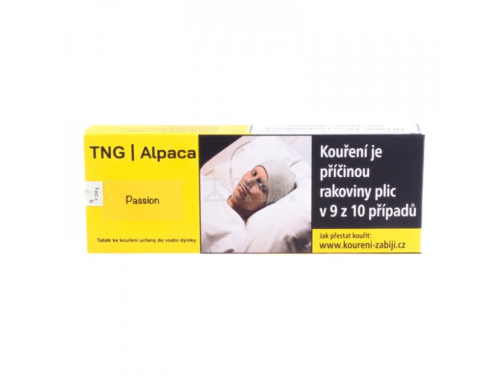 Tabák do vodní dýmky TNG Alpaca Passion s příchutí marakuji přichází v menším balení 100 g. Jedná se o prémiový silný tmavý tabák výrazné chuti. Tabák je vyráběn známou společností Tangiers, jejíž tabáky se na českém trhu prodávají pod obchodním názvem TNG Alpaca. Veškeré tabáky americké společnosti Tangiers jsou vyráběny ručně ve městě Phoenix v Arizoně a to již od roku 2000.