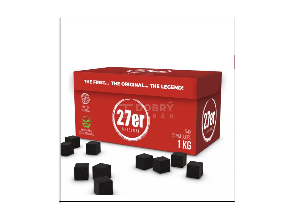 27er uhlí do vodní dýmky" označuje přírodní kokosové uhlíky o velikosti 27 mm, oblíbené pro svou dlouhou výdrž, vysokou výhřevnost a minimální množství popela, které nezanechává pachuť na tabáku, ideální pro čistý a dlouhotrvající kouř. Jedná se o ekologickou volbu, protože jsou vyráběny ze zbytků kokosových skořápek, balí se po 54 kusech a rozžhavují se na sporáku nebo žhaviči.